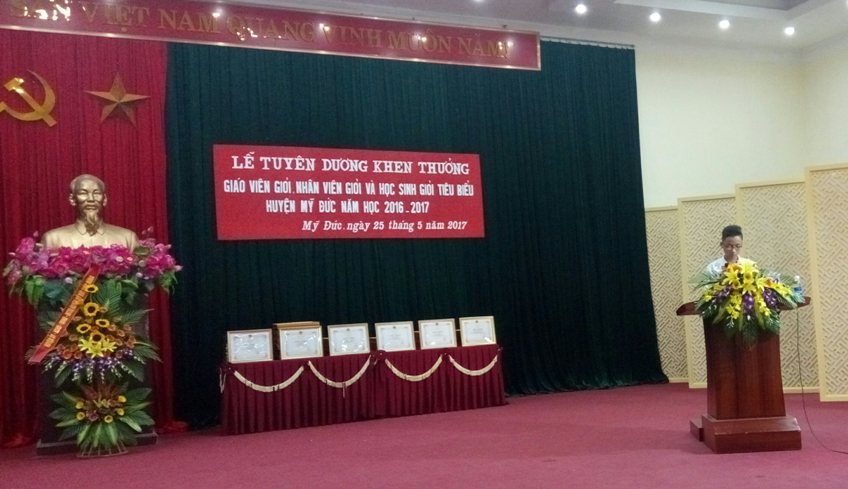 Lễ Tuyên dương khen thưởng giáo viên giỏi, nhân viên giỏi và học sinh giỏi tiêu biểu năm học 2016 - 2017 huyện Mỹ Đức đã thành công tốt đẹp, để lại dấu ấn sâu đậm trong lòng mỗi cán bộ, giáo viên, nhân viên, mỗi em học sinh, củng cố niềm tin của các cấp lãnh đạo, các bậc phụ huynh và của toàn xã hội đã dành cho Ngành GD&ĐT nói chung, Ngành GD&ĐT huyện Mỹ Đức nói riêng.