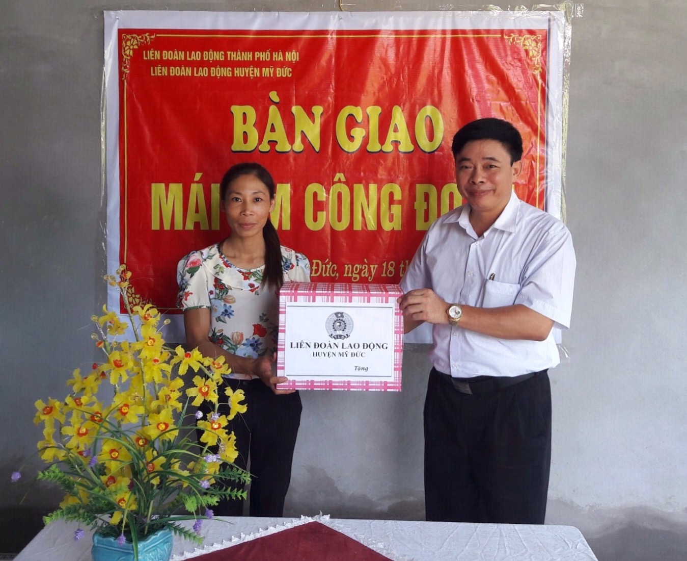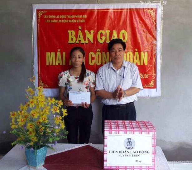 Đồng chí Đỗ Thị Dung có hoàn cảnh gia đình rất khó khăn, chồng bị tai nạn không có khả năng lao động. Cả gia đình sống trong ngôi nhà cấp 4 với diện tích 40m2 đã bị xuống cấp nghiêm trọng. Qua tình hình thực tế tại cơ sở, Công đoàn Giáo dục huyện đề nghị LĐLĐ huyện Mỹ Đức, LĐLĐ Thành phố Hà Nội khảo sát, hỗ trợ Mái ấm công đoàn cho gia đình đồng chí. Từ nguồn hỗ trợ 30.000.000đ của LĐLĐ thành phố Hà Nội cùng với sự giúp đỡ của gia đình, bạn bè, đồng nghiệp, đến nay gia đình đã xây dựng ngôi nhà kiên cố với diện tích 80m2 đổ mái bằng giúp cho gia đình vơi bớt khó khăn trong cuộc sống.